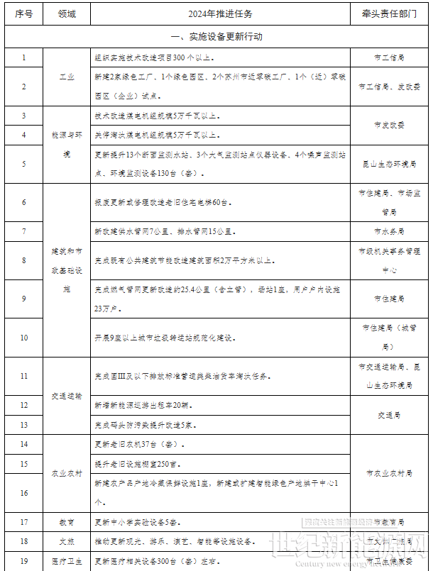 2024年昆山市推动大规模设备更新和消费品以旧换新重点任务清单