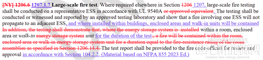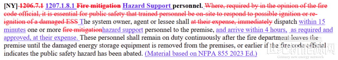 据了解,在2023年经历了三场灾难性的储能项目大火之后,美国纽约召集成立了跨机构消防安全工作组,检查运营中的储能项目是否存在安全漏洞,同针对储能火灾安全标准进行审查,并起草了《纽约消防法》修订草案,对1207储能章节做了大幅修改调整。目前该法案修订的意见征集,截止到9月24日。