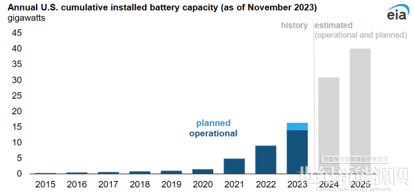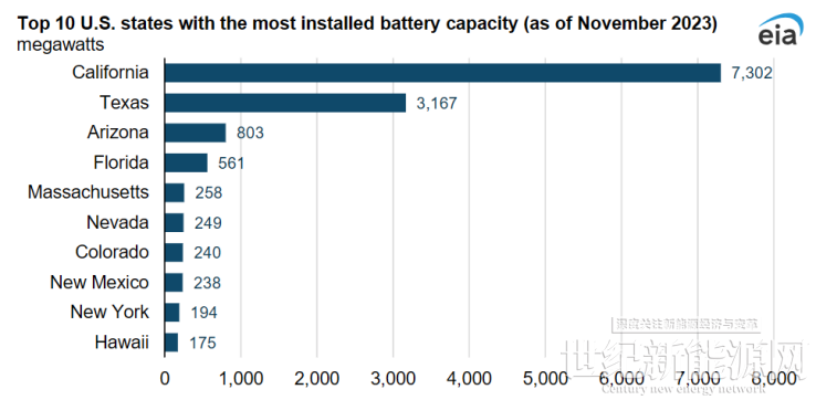 数据显示,2023年美国储能装机为8.74GW/25.98GWh,其中新能源配储与独立储能装机7.91GW/24GWh,占总装机比例超过90%。而根据EIA报告,美国2024年1-3月大储新增装机1.23GW、同比增长186%,增长势头非常强劲。EIA预测2024年美国全年储能装机将至15.27GW、同比增长68%。