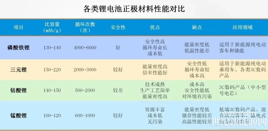 目前商用锂电池主流正极材料有磷酸铁锂、钴酸锂、锰酸锂、三元材料(NCM)等。