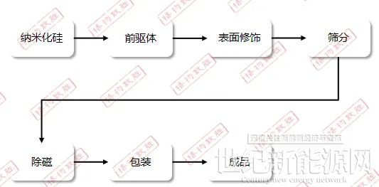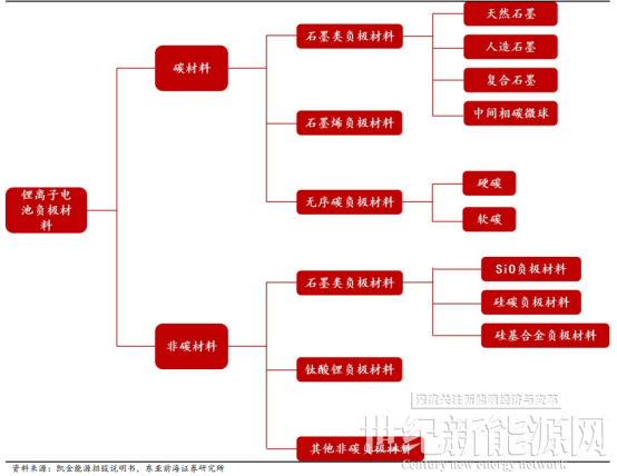 负极材料的中游为负极材料的制造加工,生产含不同种类的负极材料。