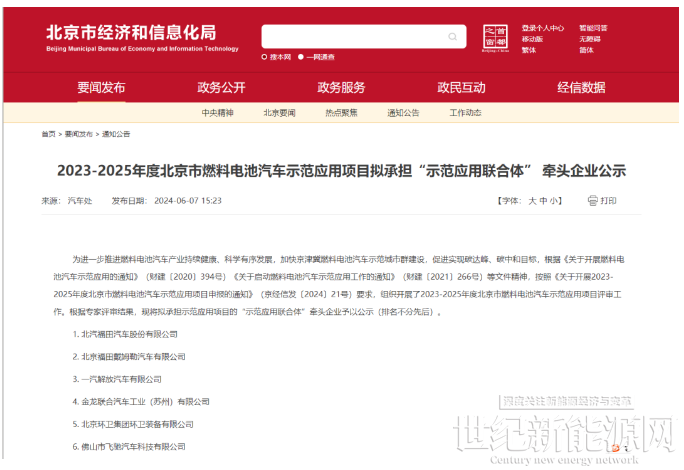 2023年6月14日,北京市经济和信息化局发布的《2023-2025年度北京市燃料电池汽车示范应用项目拟承担"示范应用联合体"牵头企业公示》中,小柿子氢能智运平台携手飞驰科技、华丰燃料电池凭借在氢能产业的深耕和丰富的运营经验,成功入选示范应用项目"示范应用联合体"牵头企业之一。这不仅是对小柿子在氢能产业领域实力的认可,也是对其在推动绿色发展方面所做努力的肯定。