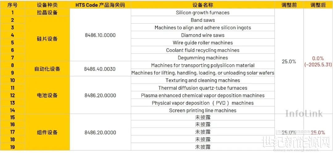 而在设备部分,此次豁免主要针对光伏产业的拉晶、硅片以及电池制造设备,反映出美国政府希望通过豁免部分关键设备,促进本土制造能力,减少对中国设备的依赖。然而,值得注意的是,针对光伏组件制造设备的五项豁免申请被拒绝。