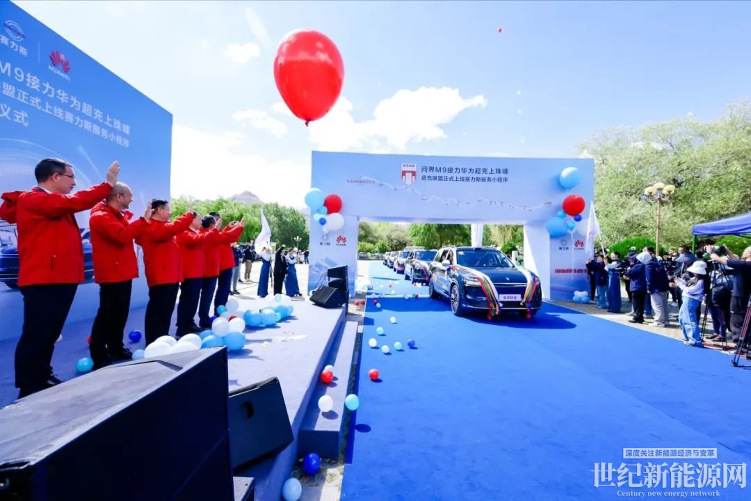 活动当日,在拉萨市马上到罗布林卡超充站,赛力斯汽车协同华为数字能源还开启了特别的重磅环节。值318川藏超充绿廊全线贯通之时,自成都出发经由318沿线抵达拉萨的问界M9车队整装出发,双方联手举行了“问界M9接力华为超充上珠峰”的发车仪式,开启了新能源车绿色畅行318的新篇章。