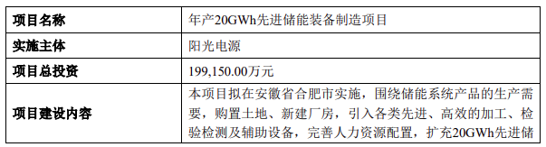 其中年产20GWh先进储能装备制造项目的基本情况如下: