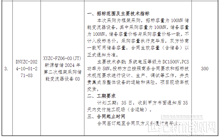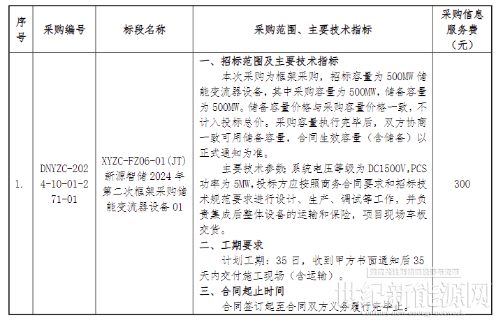 10月15日,国家电投新源智储2024年第6批非招标集中采购采购公告发布。公告显示,本次采购分为3个标段采购储能变流器设备,其中采购容量为1150MW,储备容量为1150MW,共采购2300MW。招标规格要求DC1500V,单机5MW储能PCS与单机2.55MW构网型储能PCS。