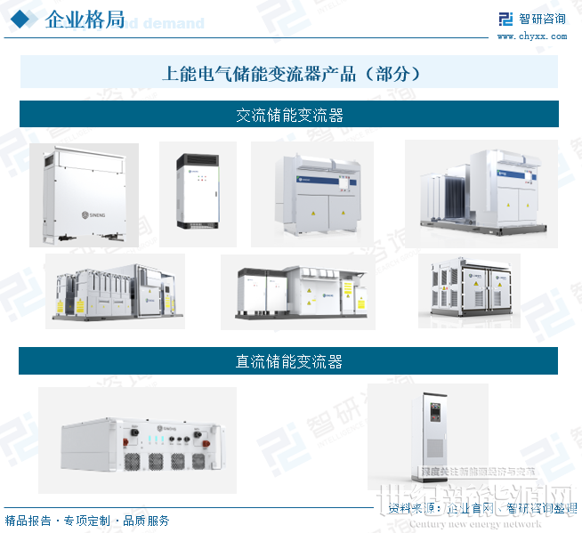上能电气是一家专注于电力电子产品研发、制造与销售的国家技术企业,业务涵盖光伏逆变器、储能系统、电能质量治理、电站开发等多个领域,致力于以全球领先的绿色科技解决方案。在储能领域,上能电气提供全场景的储能系统解决方案,具备集中式、组串式多种技术路线的1000V/1500V全系列储能变流器及系统集成产品,面向发电侧、电网侧、用户侧、微电网等多场景应用。
