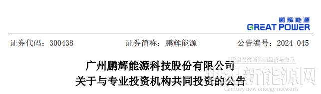 16日晚,鹏辉能源还发布公告,近日与中金汇融、驻马店黄淮基金及战新产投签署了《驻马店新能源创业投资基金合伙企业(有限合伙)合伙协议》的补充性协议,对共同投资设立的驻马店新能源创业投资基金相关事项进行了完善。