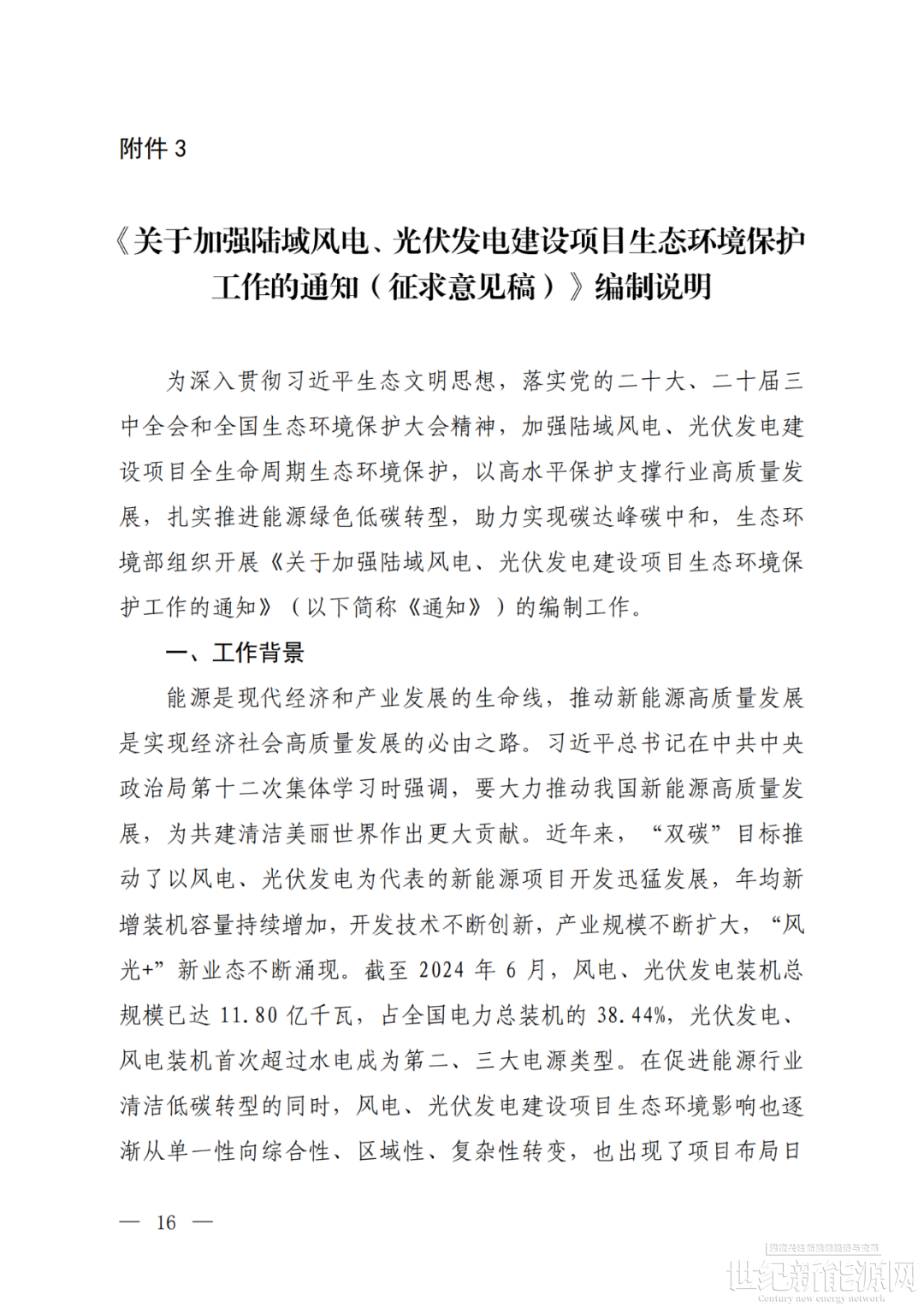 3.《关于加强陆域风电、光伏发电建设项目生态环境保护工作的通知(征求意见稿)》编制说明
