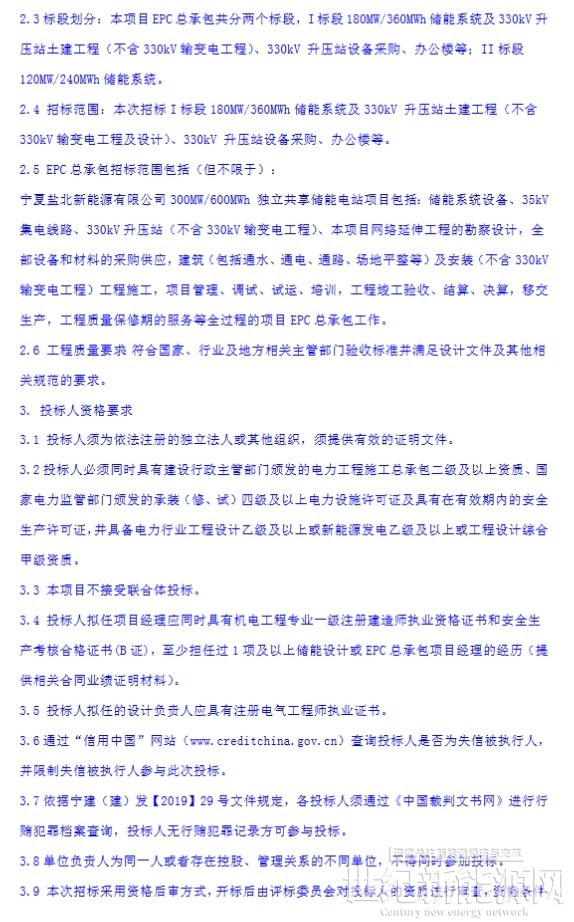 10月24日,宁夏盐北新能源有限公司300MW/600MWh独立共享储能电站项目EPC总承包(I标段)招标公告发布,招标人为宁夏盐北新能源有限公司,项目位于宁夏吴忠市盐池县高沙窝镇。