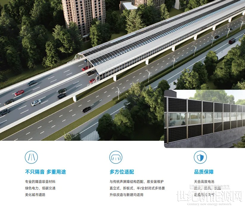 产品采用天合TOPCon电池技术,在满足吸声、隔声的基础上增添发电功能,助力低碳交通。