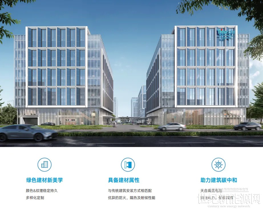 产品采用天合TOPCon电池技术,最高可达195~205Wp/㎡;产品作为光电建材,将太阳能转换成电能,为建筑提供绿色能源,减少建筑能耗,助力高性能建筑。