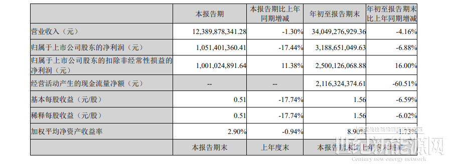2024前三季度,亿纬锂能营业总收入为340.49亿元,同比下降4.16%;净利润31.89亿元,同比下降6.88%。但扣非净利润为25亿元,同比增长16%。