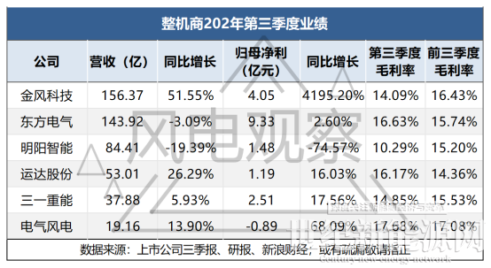 近期,金风科技、运达股份率先发布第三季度报告,随后其他整机商接连发布三季度报告。