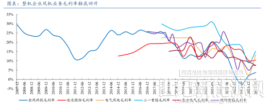 太平洋证券表示,由于一般风机招标后大概一年时间交付,加上安装确收等时间,整机商盈利周期滞后招标价格一年至一年半左右。随着此轮陆风招标价格逐步企稳,未来风机毛利率有望持续回升。