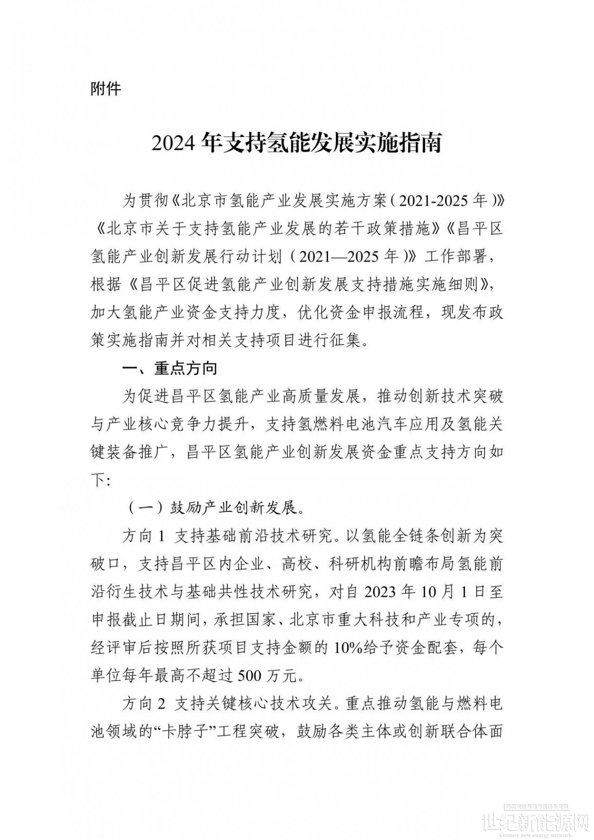 为促进昌平区氢能产业高质量发展,我局发布了《昌平区促进氢能产业创新发展支持措施实施细则》,并根据细则内容制定了2024年支持氢能发展实施指南,对鼓励产业创新发展、提供发展要素保障、支持部件整车推广三大方面的11个重点方向进行支持。现组织开展2024年氢能产业资金申请工作,请各申报单位于2024年11月21日17:00前完成申报,详见实施指南。附件:2024年支持氢能发展实施指南.docx