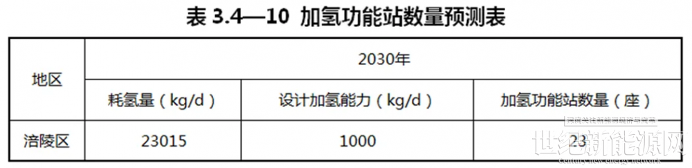 按照每座加氢站的加氢规模1000kg/d来计算,规划期内需要的加氢功能站23座,其总量如下表。