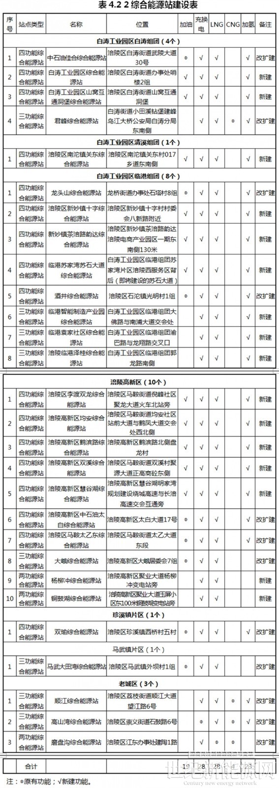 而在具体的加氢站规划方面,《通知》指出,到2030年,规划建设综合能源站28座,其中四功能综合能源站17座(改扩建6座,新建11座),三功能综合能源站8座(改扩建5座,新建3座),两功能综合能源站3座(改扩建1座,新建2座)。其中加氢站均未综合能源站,共计23座。具体布点情况见下表。