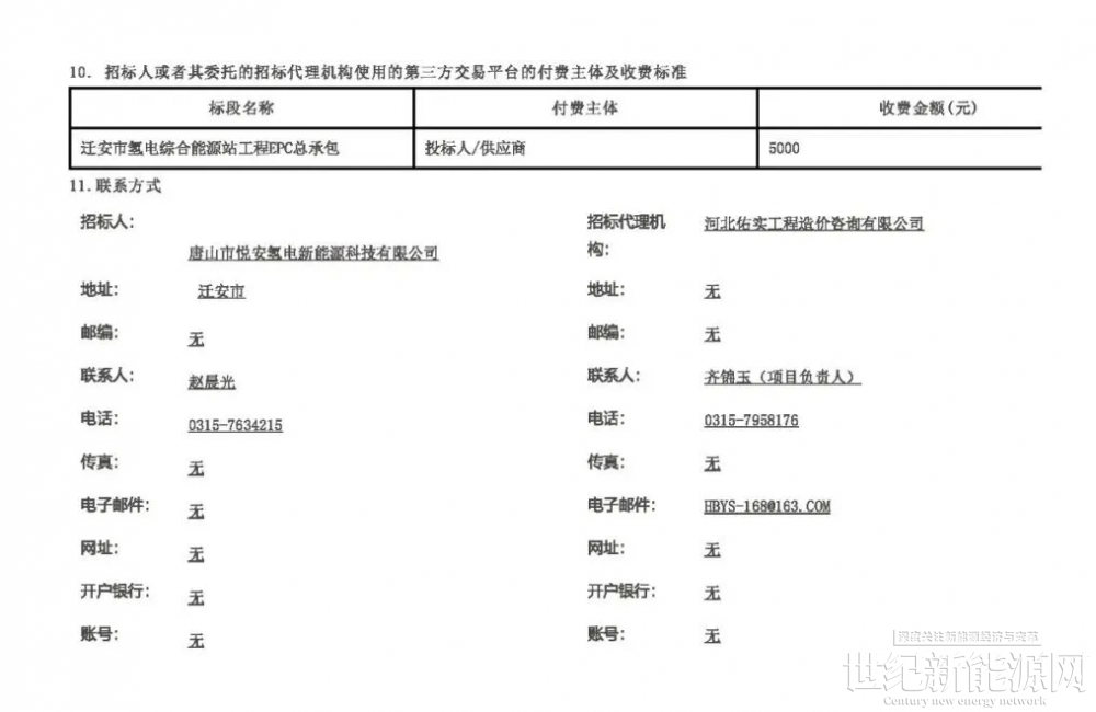 1)项目名称:迁安市氢电综合能源站工程EPC总承包