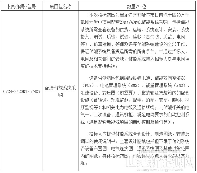 黑龙江齐齐哈尔市甘南兴十四20万千瓦风力发电项目配套储能系统采购招标公告