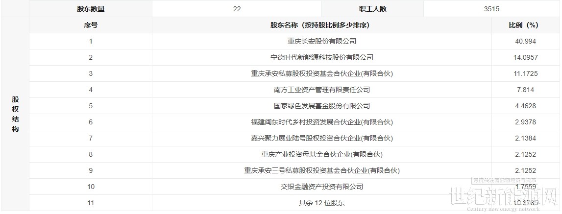 阿维塔目前有3515名员工,22位股东,其中第一大股东是长安汽车,持股比例为40.994%。