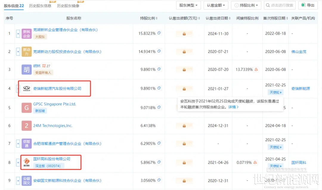 根据企查查显示,奇瑞新能源汽车及国轩高科都有投资,持股比例均在5%以上。