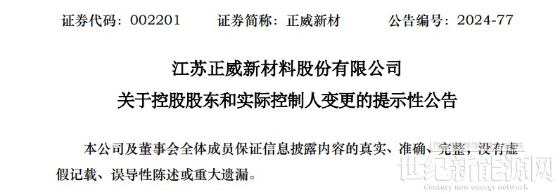 2024年5月,正威新材突然收到“行政监管措施决定书”,因正威新材未及时披露控股股东及一致行动人股权被冻结、未及时披露控股股东股权拟拍卖事项,决定对正威新材、王文银采取出具警示函的监管措施,并记入证券期货市场诚信档案。