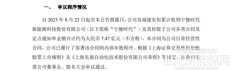 此前分别于1月、7月发布公告,2023年8月22日起至2024年1月20日,先惠技术及福建东恒与宁德时代及其子公司签订的各类合同及定点通知单,共计7.47亿元(不含税);2024年1月20日起至7月6日,签订的各类合同及定点通知单金额合计约为人民币7.72亿元(不含税)。三次签订的合同和定点通知金额合计22.44亿元(不含税)。