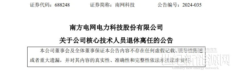 11月22日,南网科技公告称,因顾红柏先生退休离任,不再认定为公司核心技术人员。