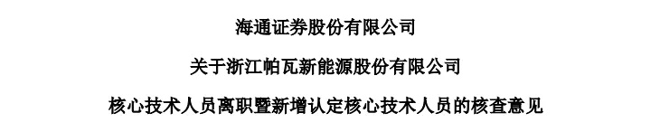 10月31日,浙江帕瓦新能源股份有限公司核心技术人员发生变动,其中林可博先生因个人原因辞去公司所任职务,不再担任核心技术人员。