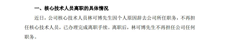 据悉,林可博,男,1994 年12月出生,中国国籍,无境外永久居留权,硕士学历。2019年2月至2022年5月,历任公司研发经理、培训经理、分析品质部部长;2022年5月至离职前,任公司研究院院长助理。