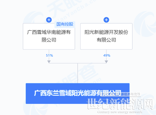 天眼查显示,近日,广西东兰雪域阳光能源有限公司成立,法定代表人为赖剑晶,注册资本2000万元,经营范围含新兴能源技术研发、储能技术服务、充电桩销售、集中式快速充电站等。股东信息显示,该公司由广西雪域华南能源有限公司、阳光电源旗下阳光新能源开发股份有限公司分别持股51%、49%。