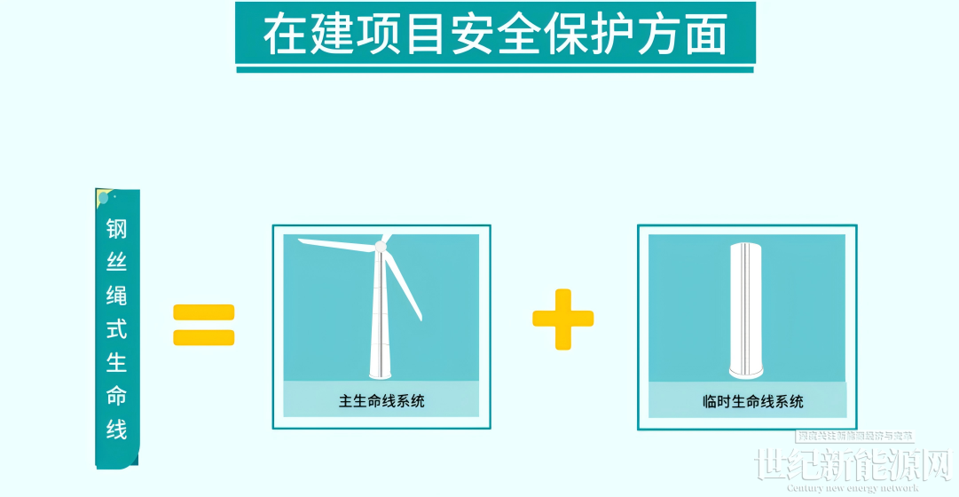钢丝绳式生命线在风电吊装场景主要由主生命线系统和临时生命线系统组成。