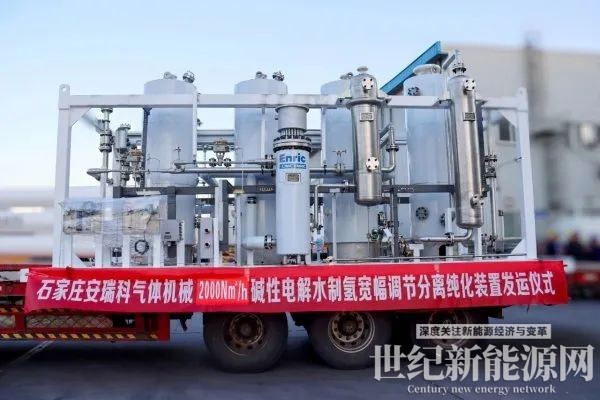2024年12月2日下午,由石家庄安瑞科气体机械有限公司自主研发的2000Nm³/h碱性电解水制氢宽幅调节分离纯化设备顺利发运,标志着石家庄安瑞科电解水制氢后处理相关产品正式走向市场。