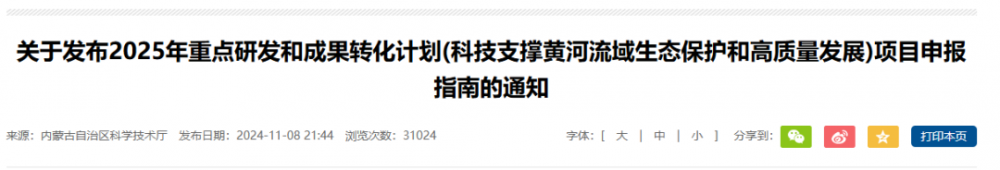 12月10日,内蒙古自治区能源局发布内蒙古自治区能源局关于组织做好自治区2025年重点研发和成果转化计划申报的通知。