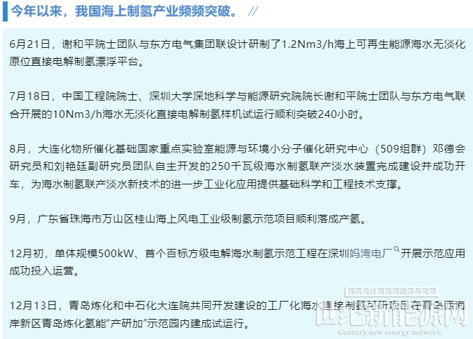 中广核制氢系统利用汕尾实验平台的配套电源,在平台上直接使用海水制氢,可发挥我国沿海地区可再生能源发电与氢基能源转化的配合优势,后续将规划利用储氢、合成甲醇、合成氨等多种手段为可再生能源综合利用开启新赛道。