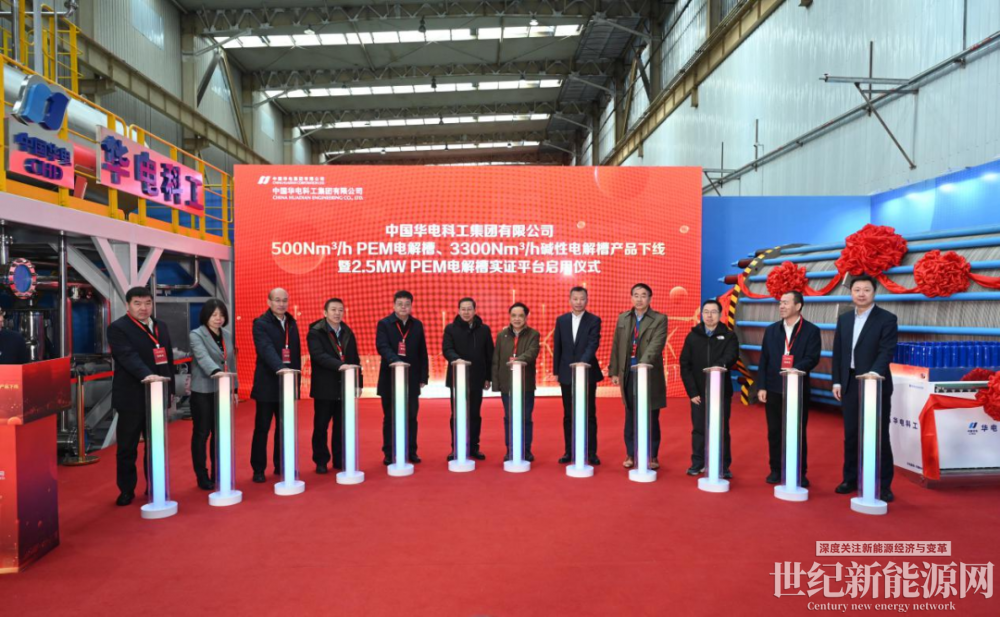 1月3日由中国华电所属中国华电科工集团有限公司自主研发的3300标方碱性电解槽及与中国科学院联合开发的500标方PEM电解槽正式下线、2.5兆瓦PEM电解槽实证平台投用,标志我国可再生能源电解水制氢装备实现新突破,对加快构建新型能源体系、实现“双碳”目标具有重要意义。中国工程院院士彭苏萍,加拿大工程院院士深圳技术大学未来技术学院院长刘清侠,天津市北辰区委书记倪斌,区委副书记、区长徐晖,区委副书记闫峰,副区长、开发区党工委书记(兼)李维东,集团公司战略规划部总监吴韶华、科技信息部副主任张宇龙,公司党委书记、董事长彭刚平,党委委员、副总经理、总工程师李建标出席活动。