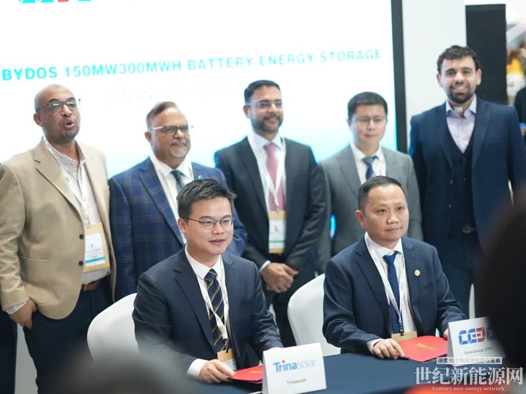 本次展会上,天合光能与AMEA Power和浙江火电举行签约仪式,将共同建设位于埃及南部地区的Abydos储能项目,成为展会焦点。天合光能将为埃及地区的Abydos光伏项目提供300MWh新一代柔性储能电池舱Elementa金刚2。这一光伏项目是非洲规模最大的光伏项目,也是埃及首个大型地面电站光储项目。此举进一步彰显了天合光能在推动中东和北非地区可再生能源发展的重要作用。