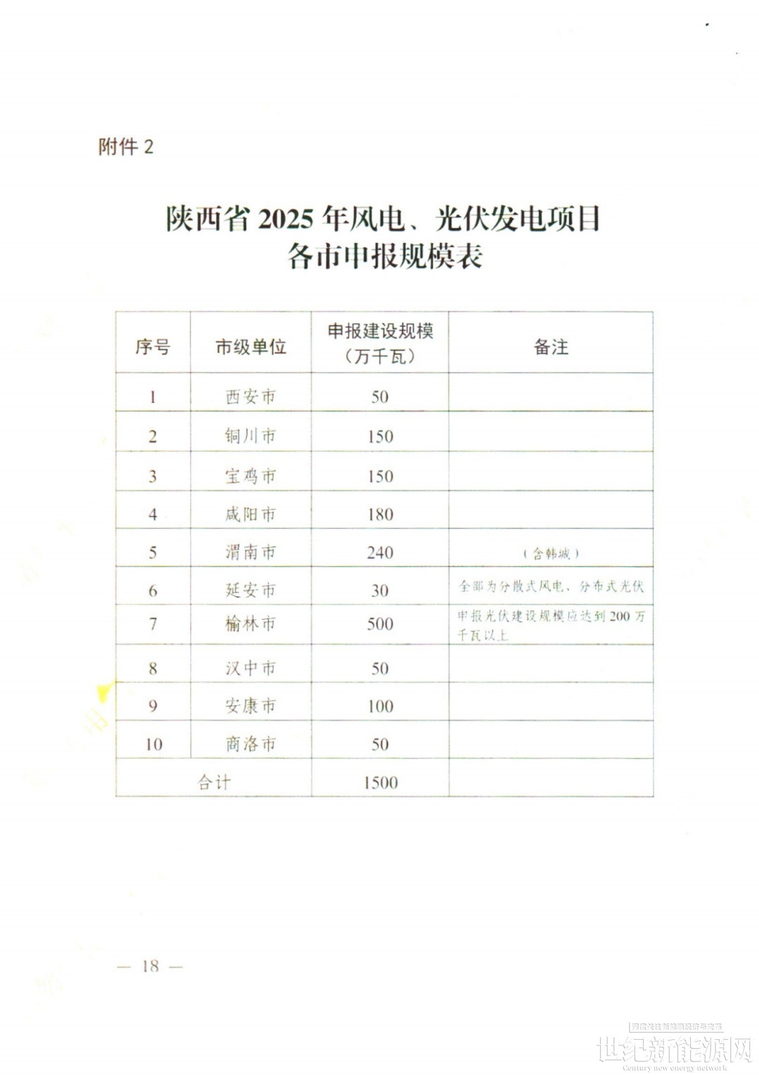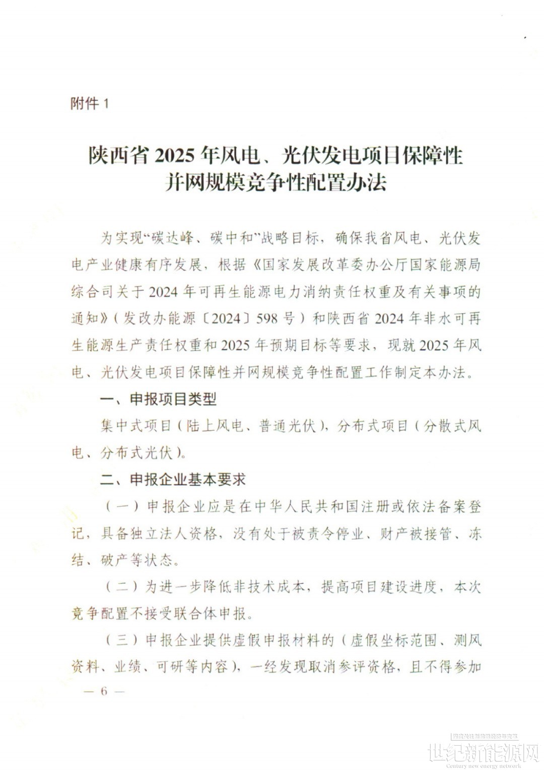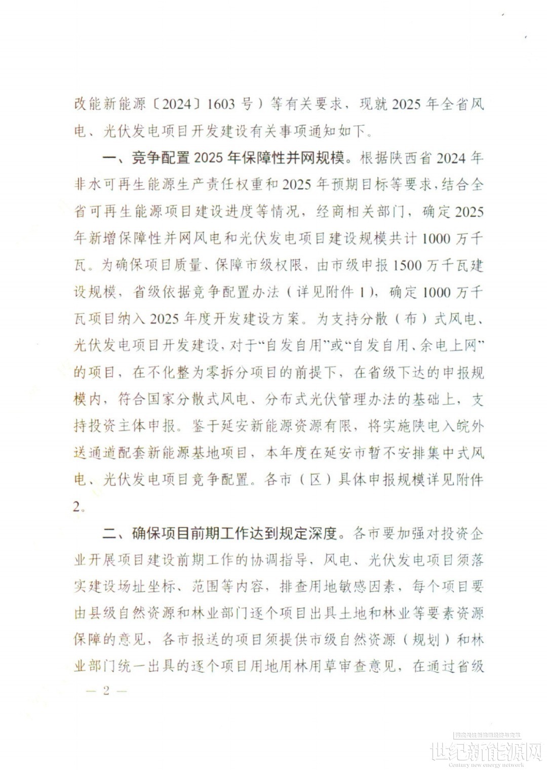 根据陕西省2024年非水可再生能源生产责任权重和2025年预期目标等要求,结合全省可再生能源项目建设进度等情况,经商相关部门,确定2025年新增保障性并网风电和光伏发电项目建设规模共计1000万千瓦。为确保项目质量、保障市级权限,由市级申报1500万千瓦建设规模,省级依据竞争配置办法(详见附件1),确定1000万千瓦项目纳入2025年度开发建设方案。为支持分散(布)式风电,光伏发电项目开发建设,对于“自发自用”或“自发自用、余电上网的项目,在不化整为零拆分项目的前提下,在省级下达的申报规模内,符合国家分散式风电、分布式光伏管理办法的基础上,支持投资主体申报。鉴于延安新能源资源有限,将实施陕电入皖外送通道配套新能源基地项目,本年度在延安市暂不安排集中式风电、光伏发电项目竞争配置。各市(区)具体申报规模详见附件2。