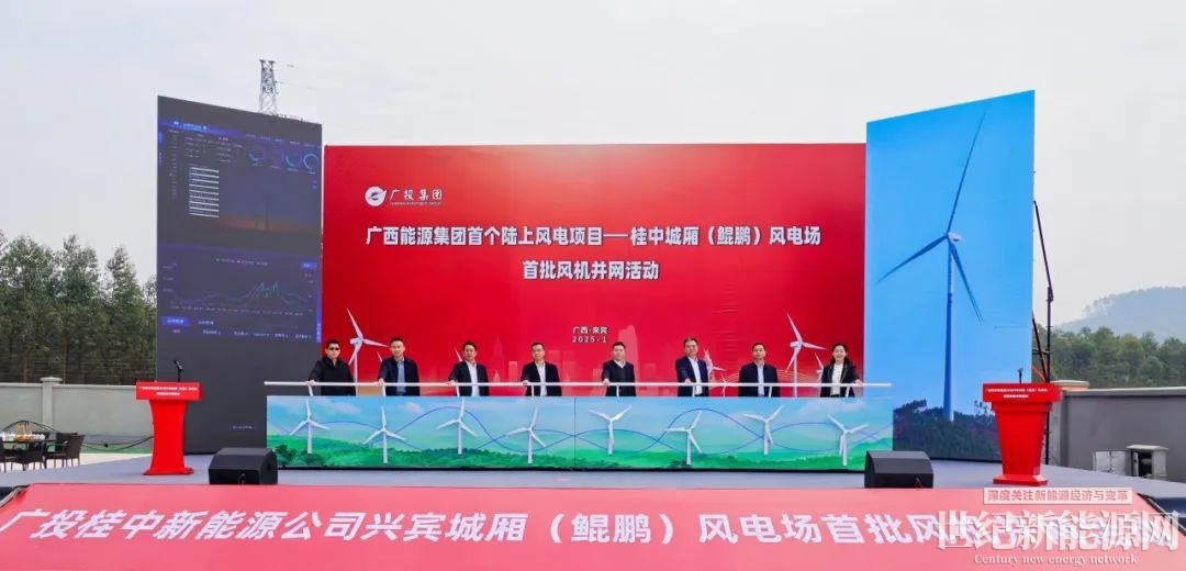 2025年1月21日,随着首批风电机组叶片迎风转动,中控室大屏上并网指示灯点亮、发电量数字跳动,标志着广西投资集团桂中城厢(鲲鹏)风电项目首批机组成功并网发电,将强劲山风转化为推动经济社会发展的澎湃动能,为2025年一季度“开门红”提供绿色清洁能源保障。广投集团党委副书记、副董事长、总经理刘明洪出席活动并宣布首批机组并网发电。