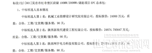 近日,吴忠市红寺堡区荷储100MW/200MWh储能项目EPC总承包中标候选人公示。
