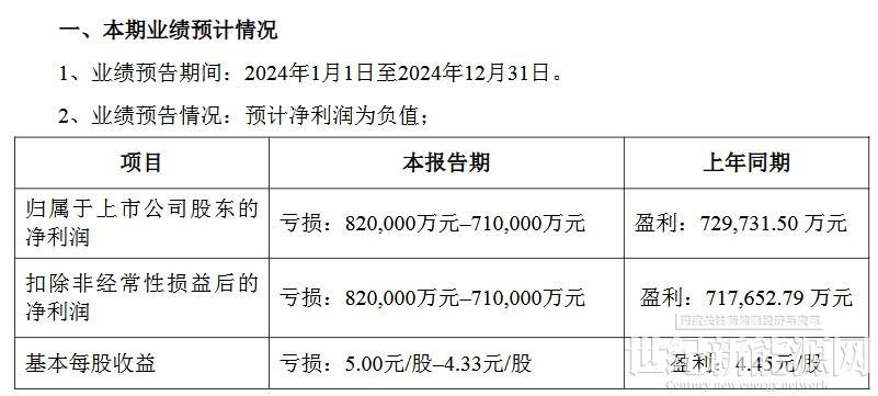同日,天齐锂业也披露公司2024年业绩预告,预计公司2024年亏损82亿元~71亿元。