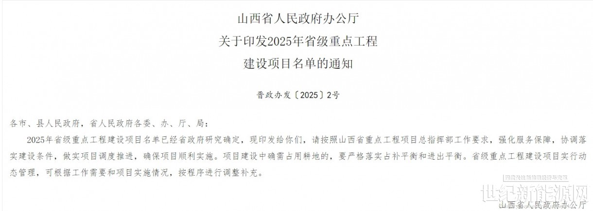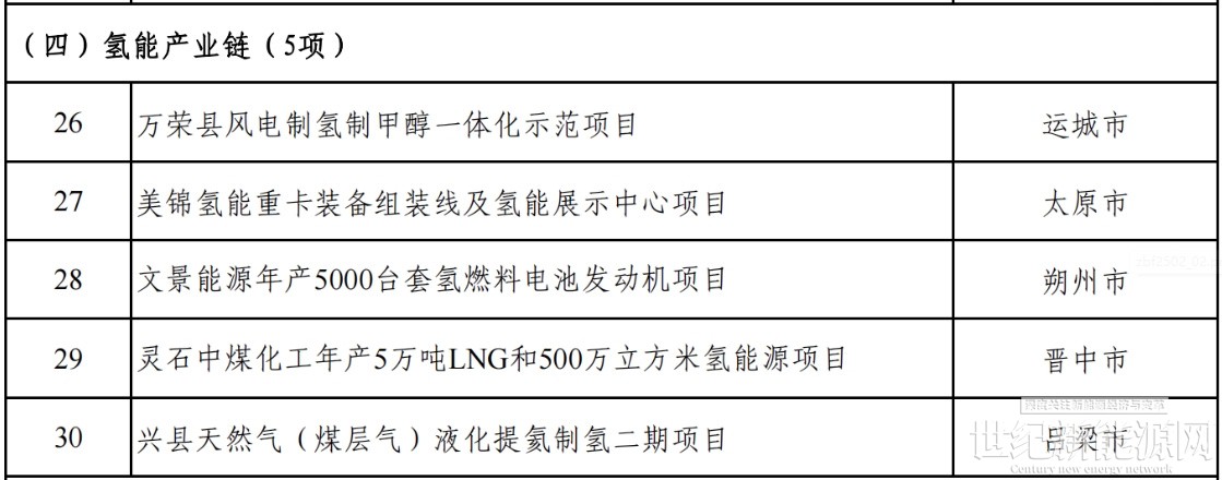 近日,山西省人民政府办公厅印发2025年省级重点工程建设项目名单,含5个氢能项目,涉及氢燃料电池、氢能重卡、制氢项目等领域。