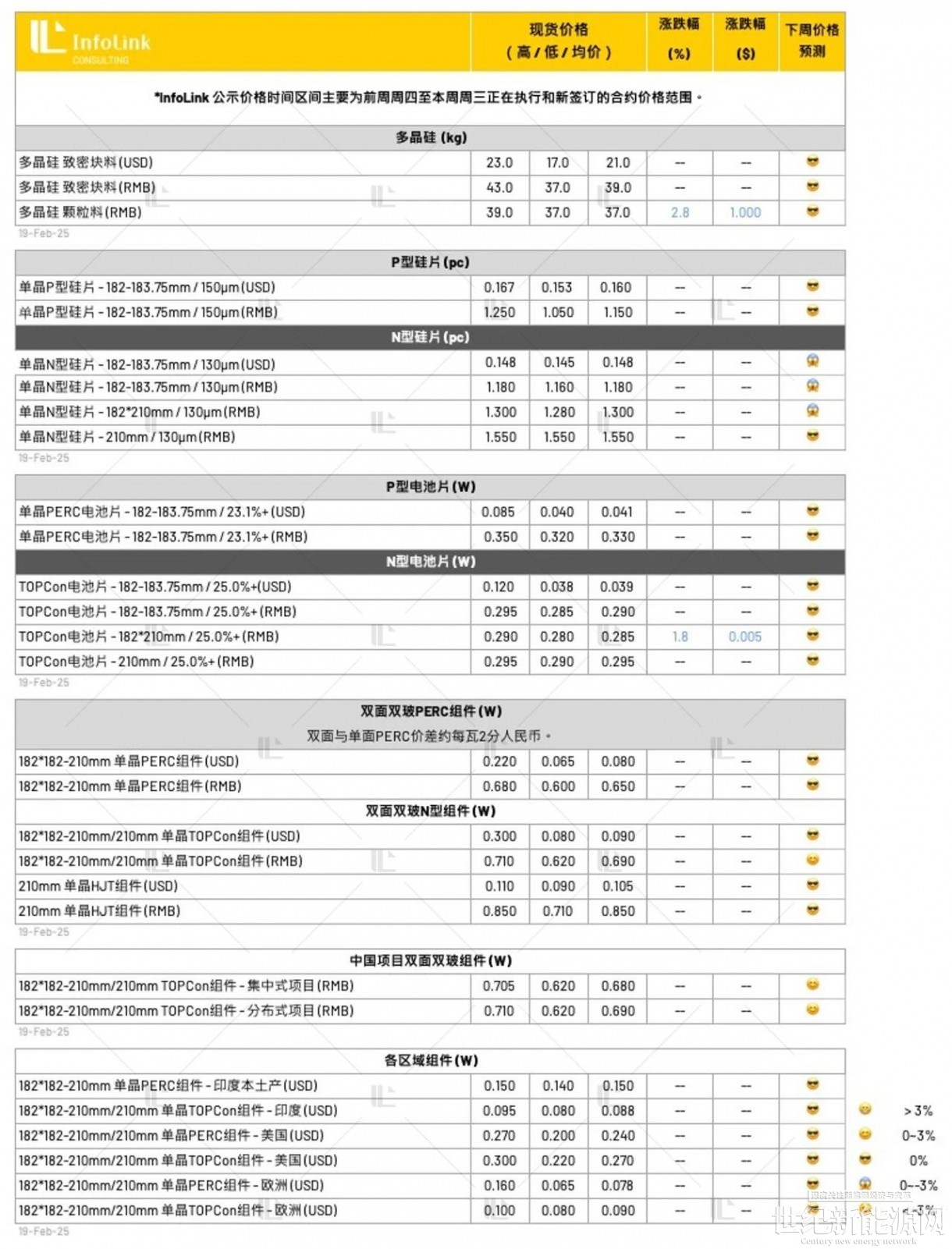 2月19日,Infolink Consulting发布本周光伏供应链价格。