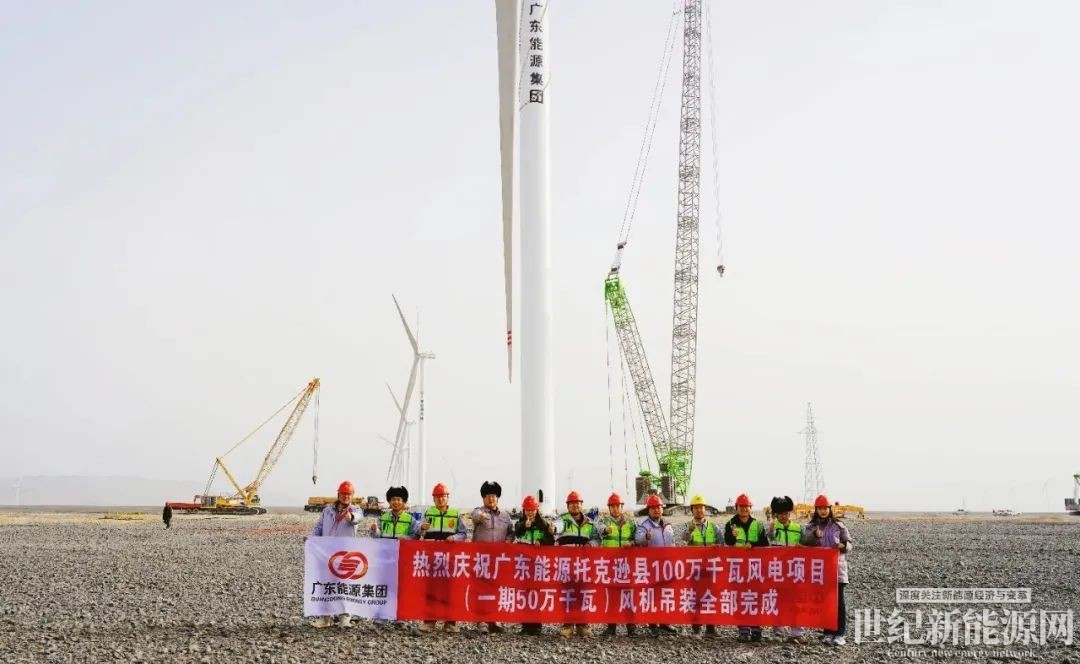 2月25日,新疆吐鲁番——随着最后一台风机叶轮与机舱精准对接,广东能源集团新疆托克逊100万千瓦(一期50万千瓦)风电项目实现全部吊装。该项目不仅是新疆当前已建设的、最大规模采用10MW陆上风电机组的标杆工程,更以“交付周期不足3个月”的亮眼数据,刷新了当地陆上大兆瓦风电项目建设的效率纪录。