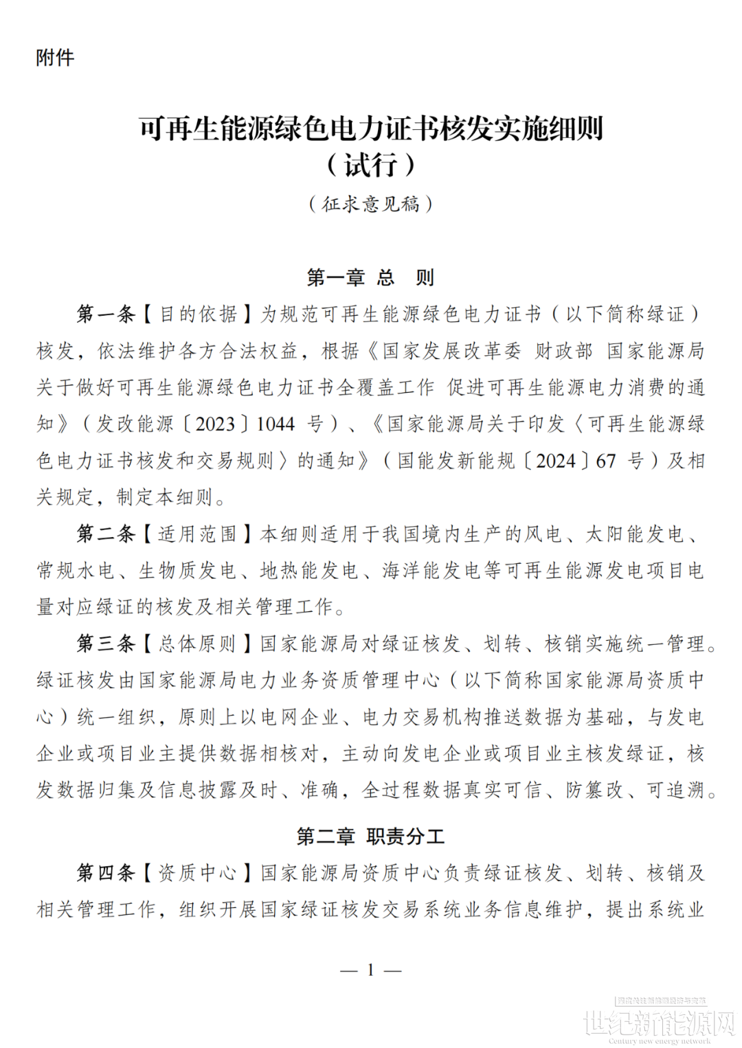 附件:《可再生能源绿色电力证书核发实施细则(试行)》(征求意见稿)
