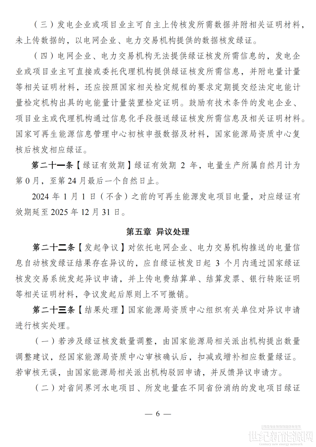 2024年1月1日(不含)之前的可再生能源发电项目电量,对应绿证有效期延至2025年12月31日