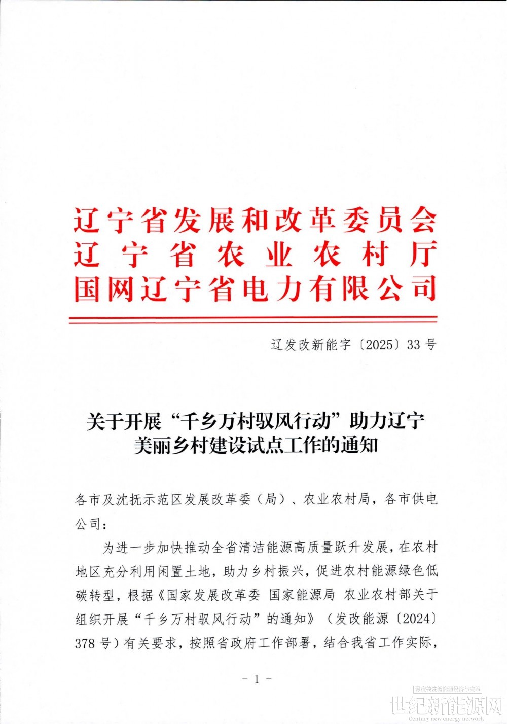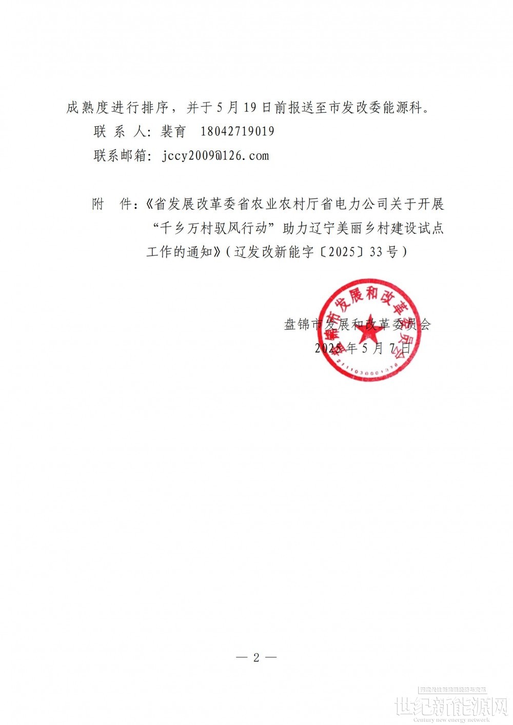 附件:1.盘锦市发展改革委转发《省发展改革委省农业农村厅省电力公司关于开展“千乡万村驭风行动”助力辽宁美丽乡村建设试点工作的通知》的通知