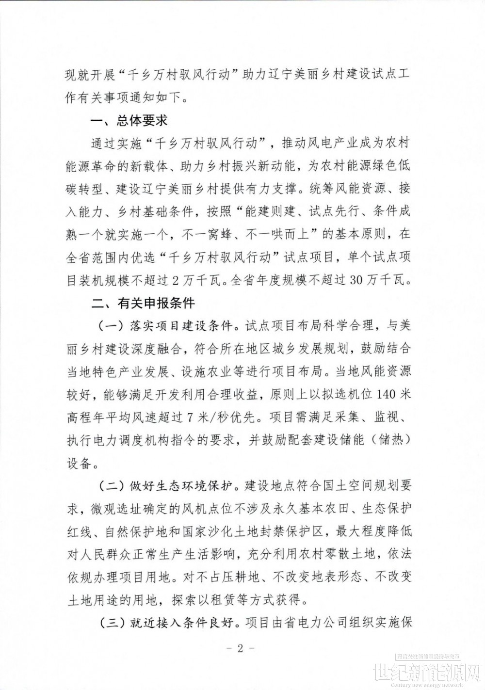 “千乡万村驭风行动”单个试点项目规模不超过2万千瓦,原则上以拟选机位140米高程年平均风速超过7米/秒优先,项目需满足采集、监视、执行电力调度机构指令的要求,并鼓励配套建设储能(储热)设备。