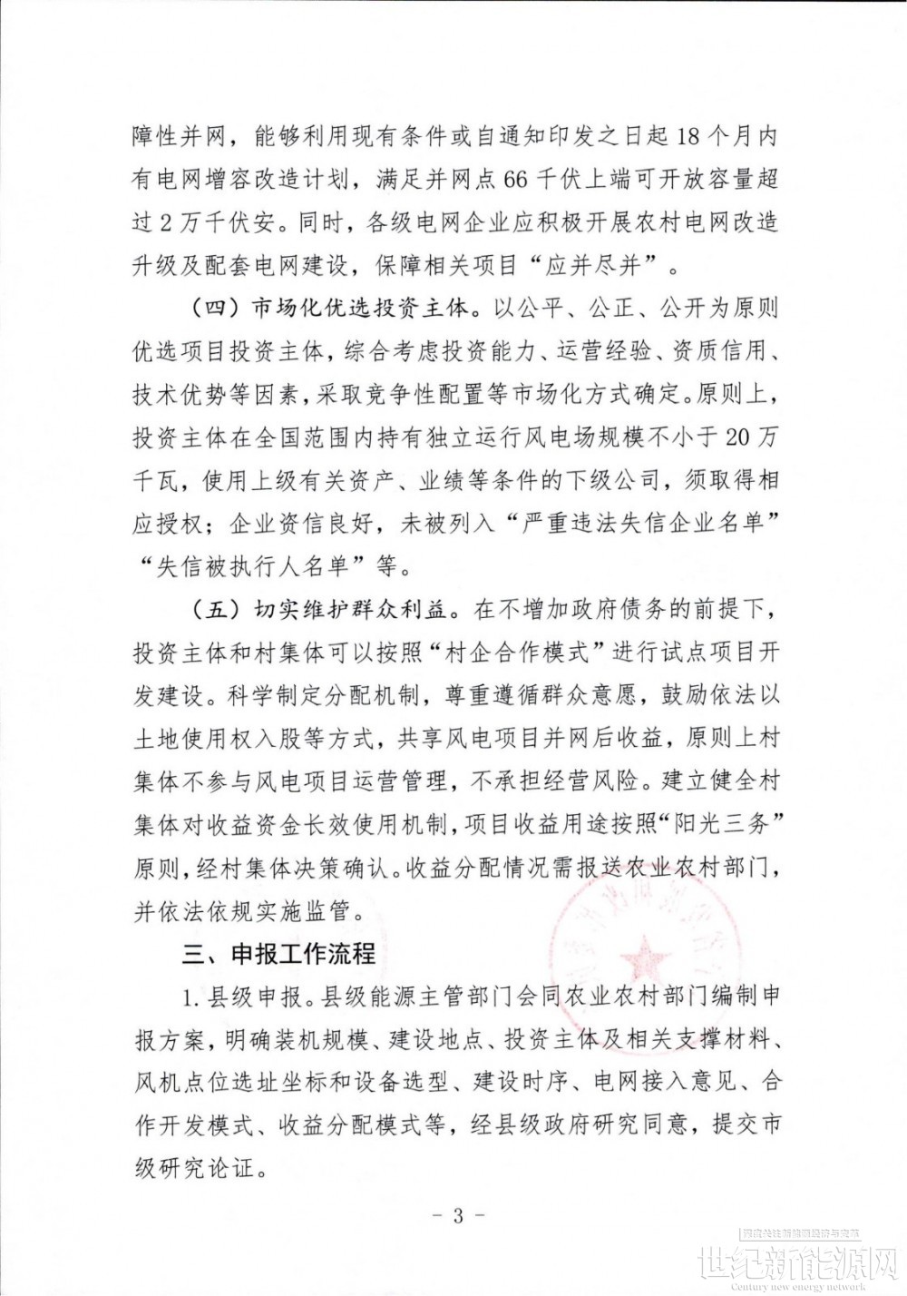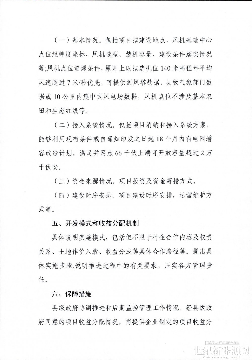 内容还指出,在不增加政府债务的前提下,投资主体和村集体可以按照“村企合作模式”进行试点项目开发建设。科学制定分配机制,尊重遵循群众意愿,鼓励依法以土地使用权入股等方式,共享风电项目并网后收益,原则上村集体不参与风电项目运营管理,不承担经营风险。建立健全村集体对收益资金长效使用机制,项目收益用途按照“阳光三务”原则,经村集体决策确认。收益分配情况需报送农业农村部门,并依法依规实施监管。